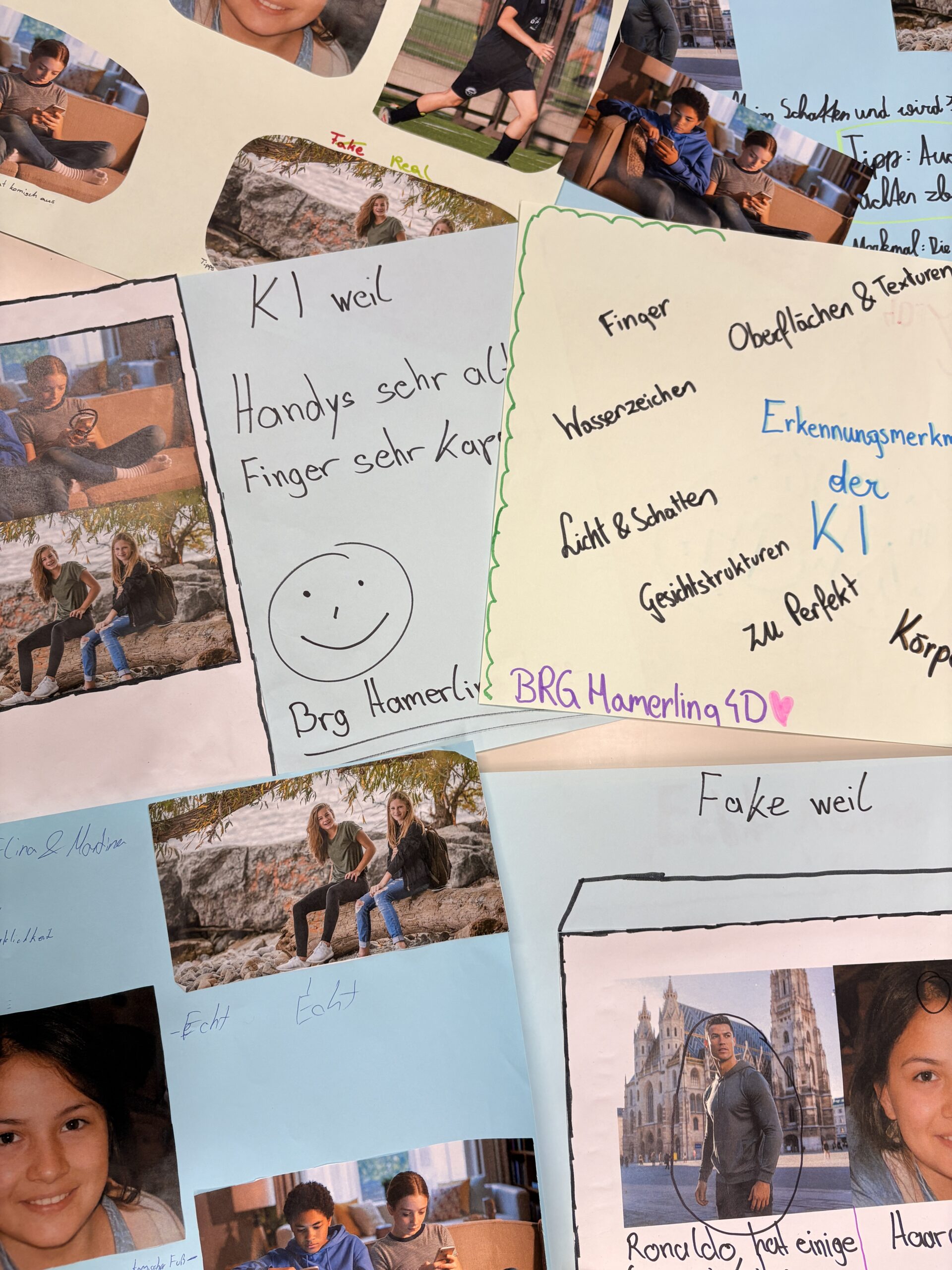 Die Schüler:innen analysierten verschiedene Fotos, ordneten zu, welche davon künstlich erzeugt wurden, und sammelten typische Erkennungsmerkmale von KI‑Bildern. Zum Abschluss überlegten sie, welche Tipps sie ihren Eltern oder Großeltern geben würden, damit auch diese Deepfakes besser erkennen können.