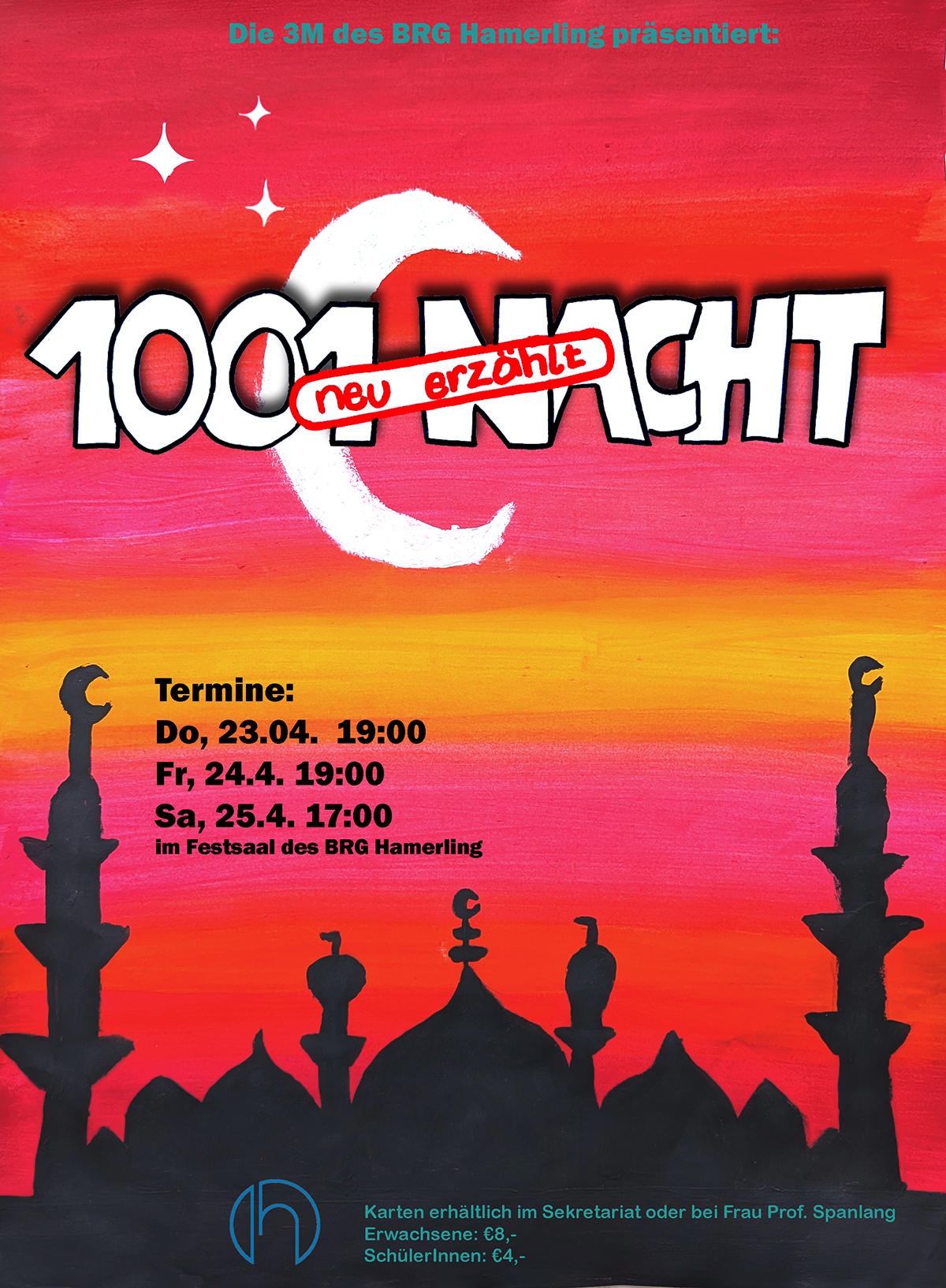 „1001 Nacht – neu erzählt“ wird an folgenden Tagen im Festsaal des BRG Hamerling aufgeführt: